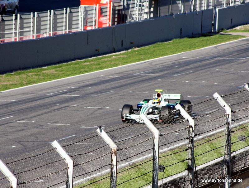 Das folgende Bild zeigt Bruno Senna in der langgezogenen Kurve vor der Start-Ziel Geraden