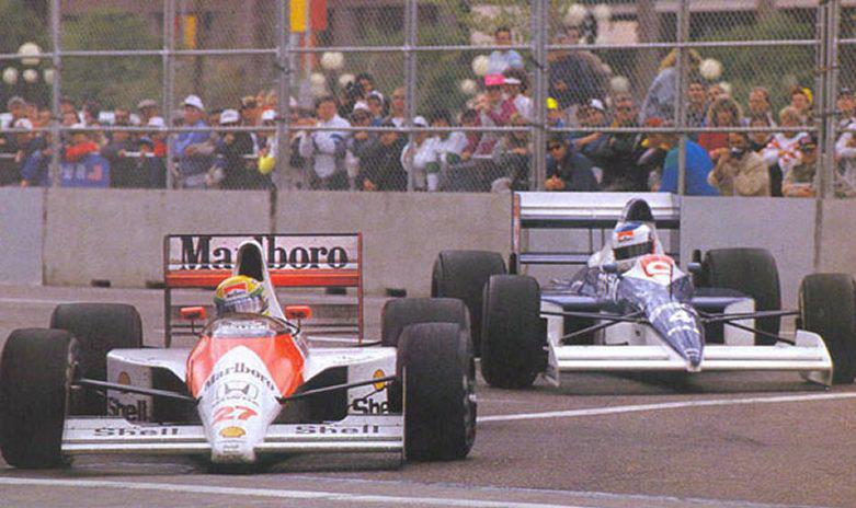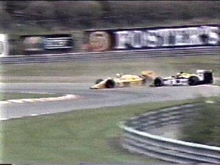 Alain Prost stellte in Adelaide 89 nach einer Runde das Auto in der Boxengasse ab und gab auf. Mit einem riesigen Vorsprung auf den Zweitplatzierten im Rennen fuhr Sennas McLaren-Honda bei hoher Geschwindigkeit im 5. oder 6.Gang auf der Gegengeraden in das Heck des überrundeten Brabham Judd. Senna hatte keine Chance den Brabham zu sehen in der Regen Gischt. Senna riss sich dabei das linke Vorderrad ab (siehe Bild oben) und hatte durch den ausfall in Adelaide auch keine theoretische Chance mehr auf den WM Titel, wenn ein Berufungsgericht die Disqualifikation von Suzuka 89 aufheben würde.