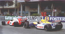 Das nächste Bild zeigt Mansell im Williams, der eine weite Linie fahrt in Rascasse Passage in Monaco. Monaco war ein weiterer Beweis dass Senna unter großem Druck fehlerfrei fahren konnte wie kein anderer Pilot nach ihm. Es war nahezu unmöglich Senna in einen Fahrfehler zu treiben, trotz mehrerer Beinahe Kollisionen zwischen Mansell und Senna.