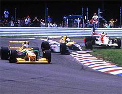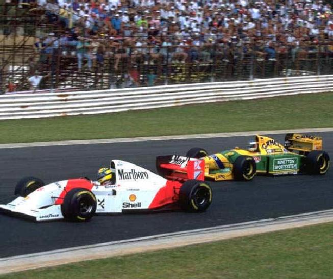 Trotz 100 PS Handicap von Sennas McLaren Ford (Kundenmotor Typ Serie 5) gegenüber dem Renault Motor hält Senna Prost rundenlang hinter sich auf der Hochgeschwindigkeitsstrecke von Silverstone im Jahr 1993. Auch Schumacher im Benetton Ford (mit Werksmotor Typ Serie sieben) hat es nicht grade leicht an Senna vorbeizukommen. Flavio Briatore wird leicht nervös als Senna Schumacher die Türe zuschmeißt in einer schnellen Kurve.