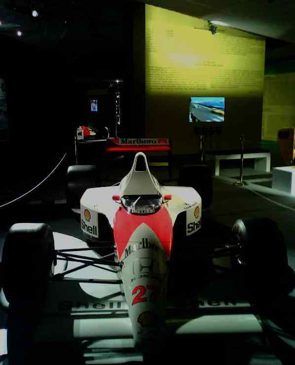 Sennas Mc Laren von 1992 Jahrgang stand am Eingang gleich. Auf diesem Auto fuhr Ayrton Senna den spektakulärsten Sieg ein den Monaco je erlebt hatte gegen Nigel Mansell auf abgefahrenen Reifen am Ende des Rennens.