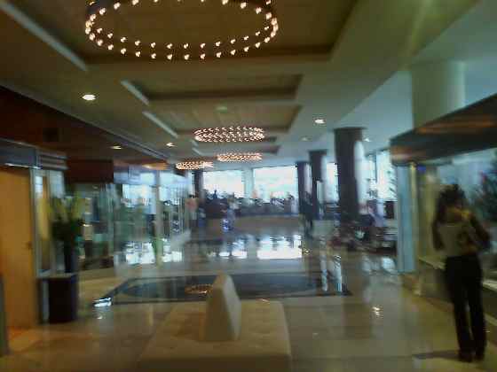 Ein langer Marmor Gang im Nobel Hotel auf dem Weg zur Ayrton Senna Ausstellung