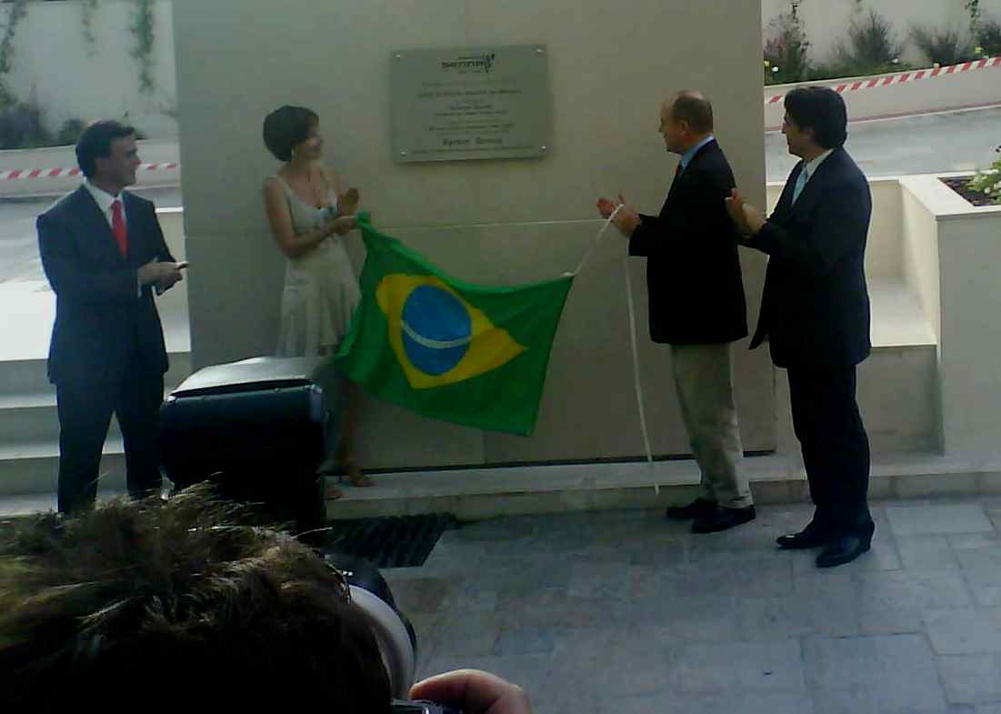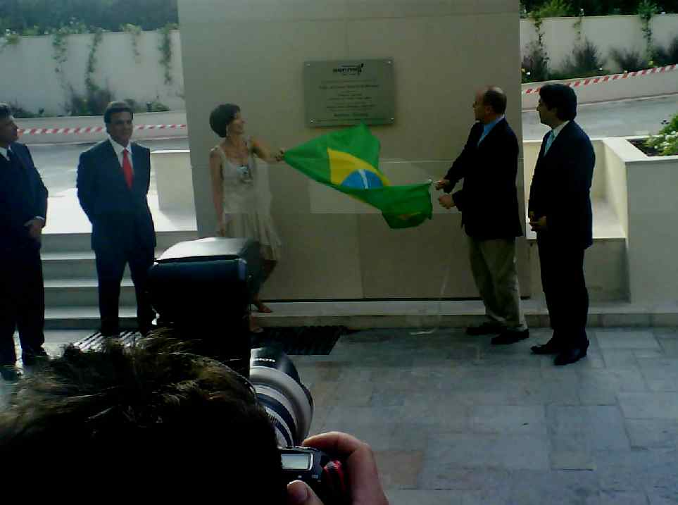 Viviane Senna vor dem Eingang des Hotels Fairmont (ehemaliges Loews Hotel), in dem auch die Ayrton Senna Ausstellung und Versteigerung stattfand. Viviane Senna lachte, als Sie mich sieht.