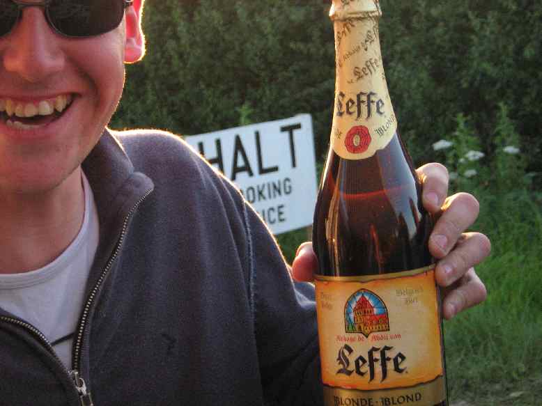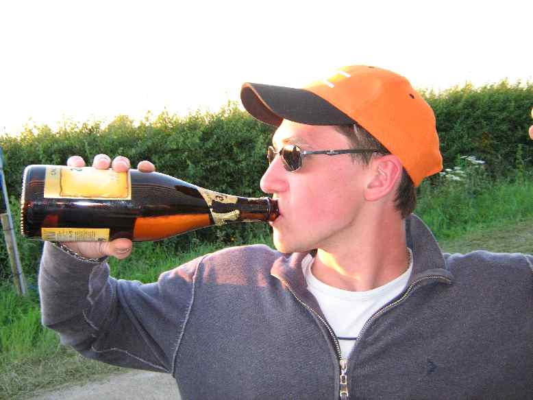 Der Kontrolleur trank ebenfalls mit. Bier sieht manchmal auch aus wie Sekt wie man sieht anhand der Flaschenform.