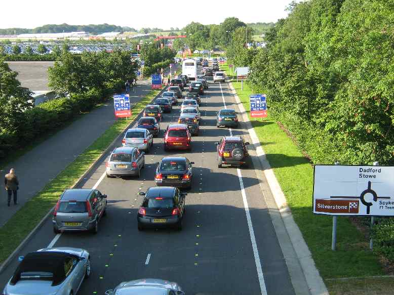 Stau am Sonntag morgen direkt an Rennstrecke.