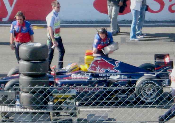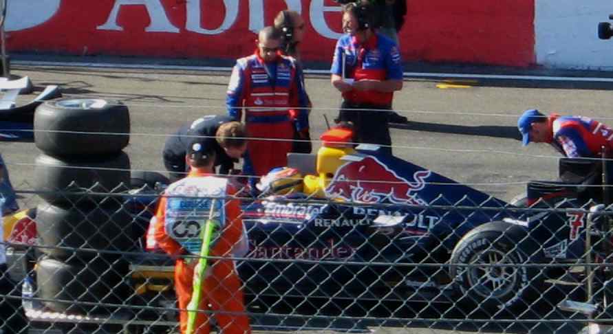 Da steht er nun der schöne Red Bull Bolide von Bruno Senna. Die Arden Techniker kümmern sich noch um letzte Feinheiten am Auto.