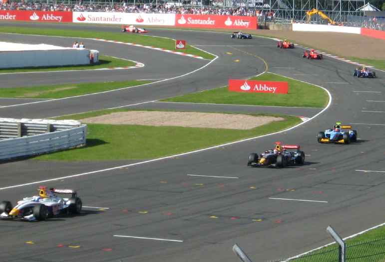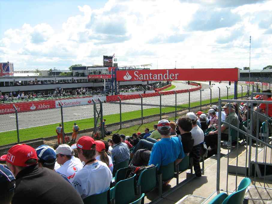 Viel besser sind die Platin Plätze etwa 200 m weiter vorne Eingangs Start Ziel - wo man das Kurvengeschlängel gut beobachten das vor Eingangs Start ist Ziel vor der Woodcote Schikane.