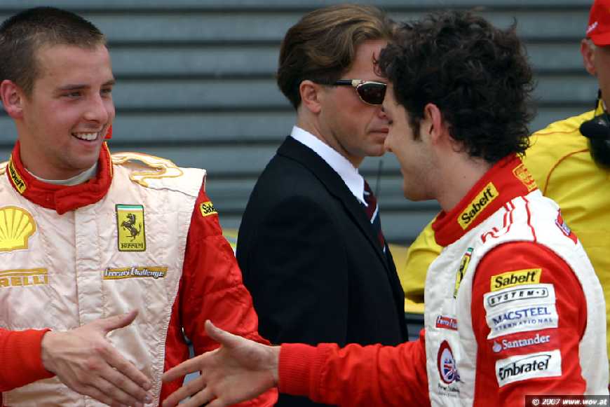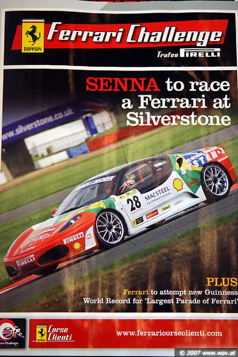 Leider hab ich keine Starterliste gefunden von der Ferrari Challenge. Denn der Fahrer dem Senna die Hand gibt dürfte ein talentierter deutsche Nachwuchsfahrer sein der aus dem Kartsport kommt und der die Ferrari Saison gesponsert bekommt. Über ihn gab es in der örtlichen Presse einen Zeitungsbericht im Dezember 2006 oder Januar 2007. Wer den Namen des Fahrers kennt kann ihn gern im Forum mal nennen wer das ist dem Senna da die Hand gibt.