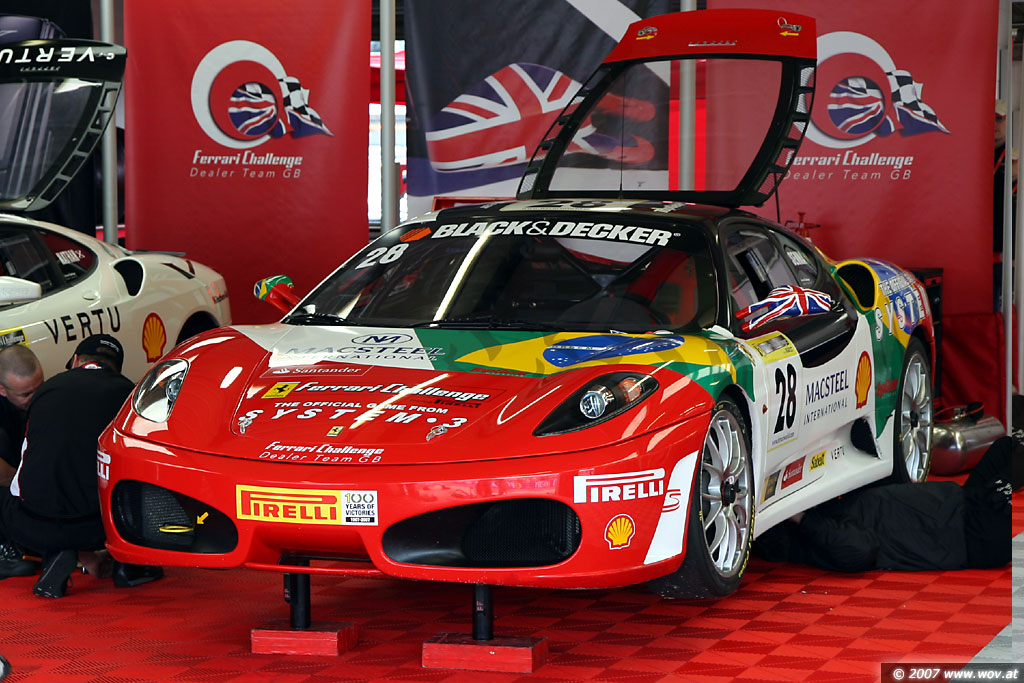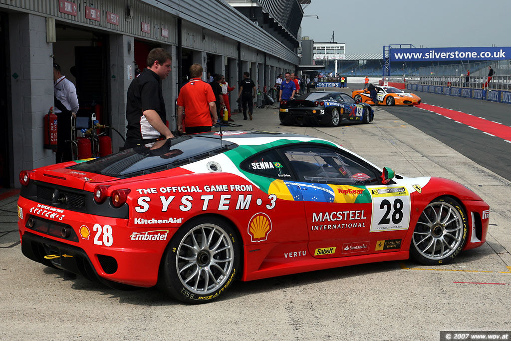 Boxengasse Silverstone. Senna und zwei andere Ferrari Challenge Fahrzeuge.