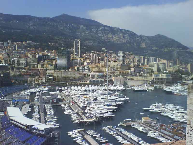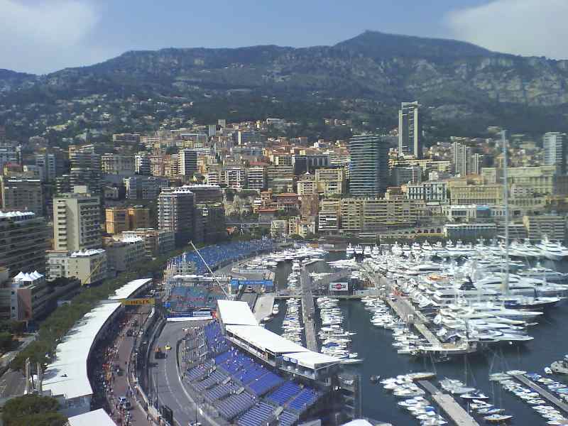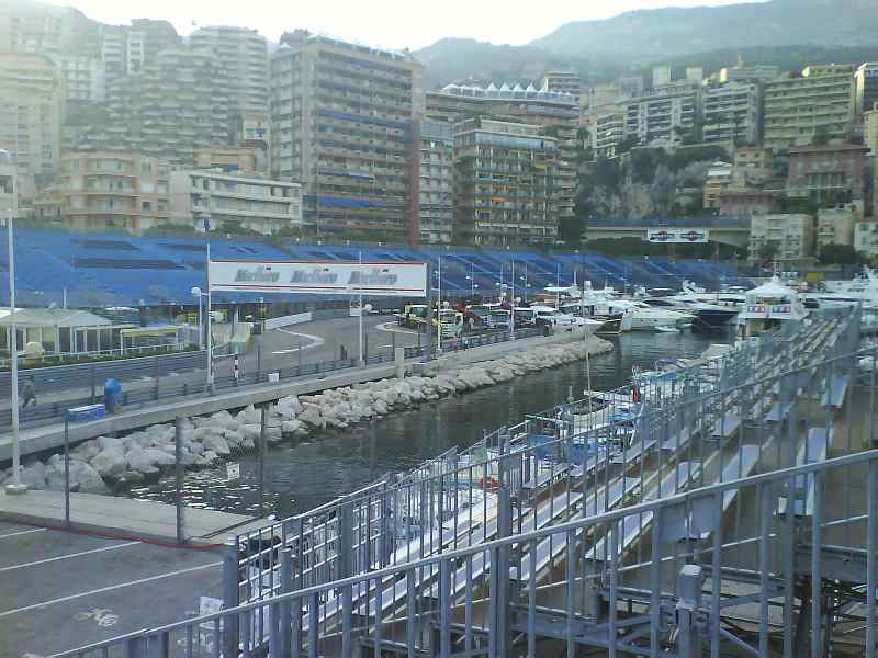 Bilder vom Secteur Rocher auf den Hafen. Hier hat man Blick auf den Streckenbereich Eingangs Schwimmbad bis Eingang Start-Ziel Gerade. Er befindet sich neben dem Grimaldi Palast.
