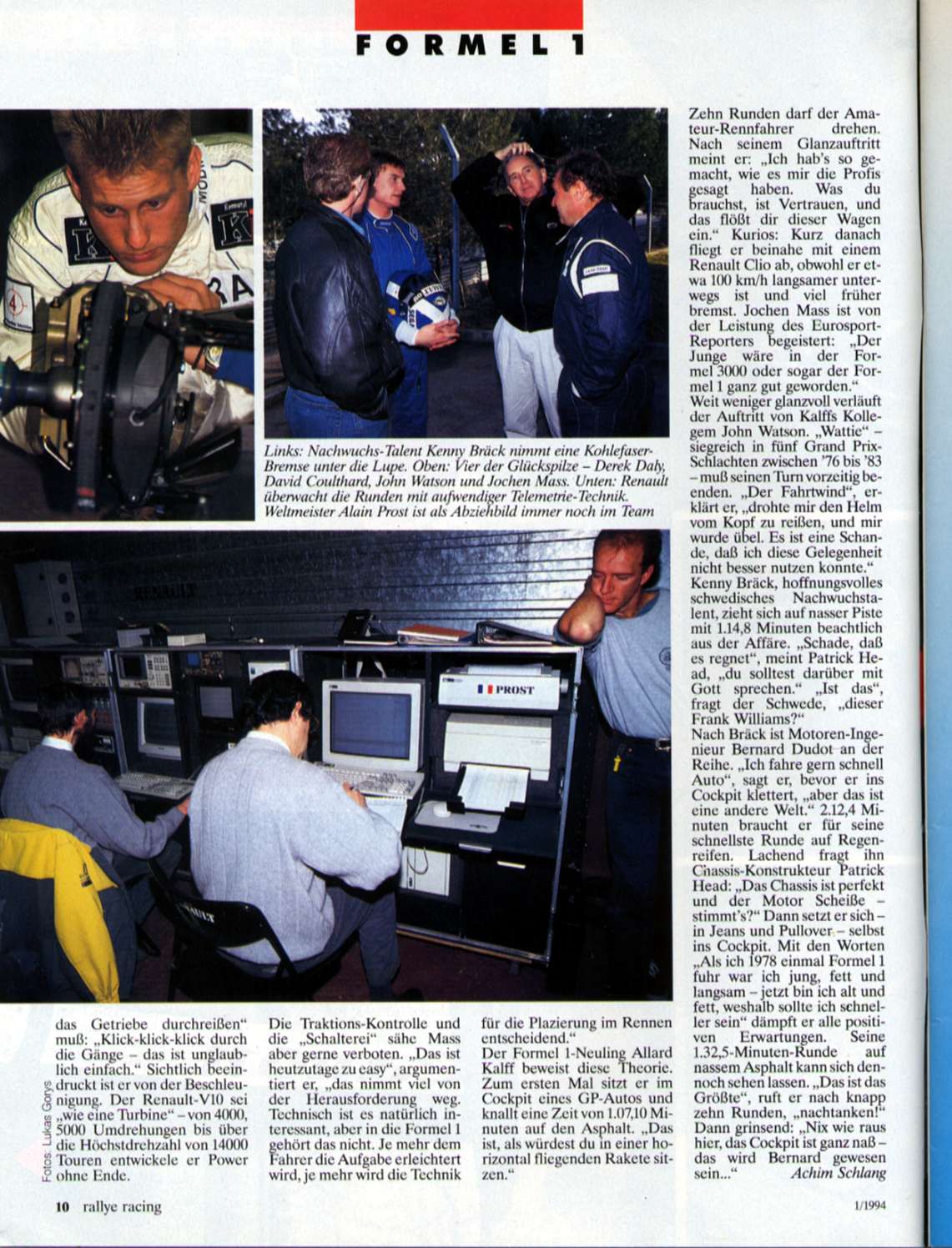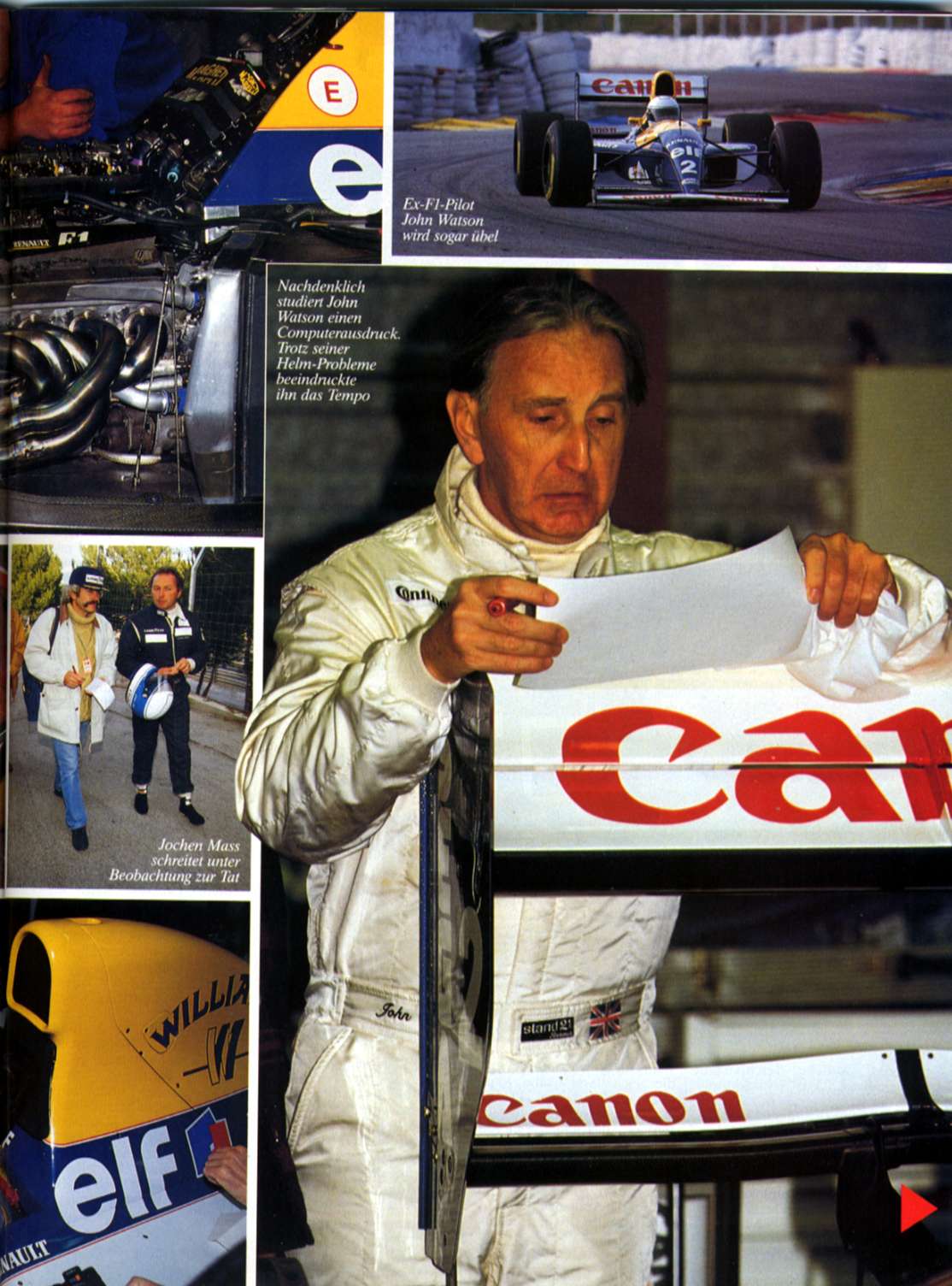 Mansells schnellste Rennrunde beim GP Frankreich 1990 war 1:08,01. Allard Kalff (Eurosport F1 Kommentator) als "Formel 1 Neuling" fährt mit dem Williams eine sehr gute 1:07,10 min Runde! Auch Jochen Mass hatte eine Zeit von 1:07,8 min stehen, was somit ebenfalls schneller war als Nigel Mansells schnellste Rennrunde im Ferrari im Jahr 1990 beim GP Frankreich. Dies zeigt wie "einfach" der Williams Renault FW 15 zu fahren war und welch einfach zu fahrendes Auto Alain Prost im Jahr 1993 hatte.
